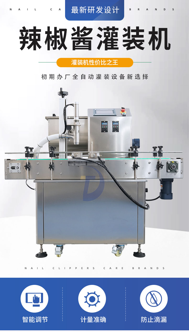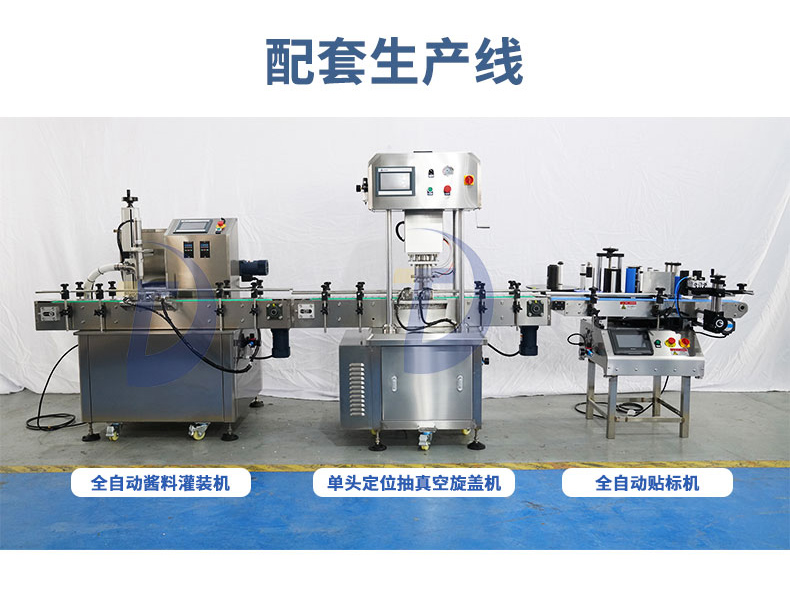 小型醬料灌裝生產(chǎn)線 包括半自動將料灌裝機 半自動真空旋蓋機以及半自動貼標機 適用于初期辦廠研發(fā)設計。灌裝機用于垃圾愛哦將、拌面醬、豆瓣醬、大塊肉醬等物料的定量灌裝,變頻攪拌讓物料均勻,200L的大料斗讓物料充足。南自動真空旋蓋機單人便可以操作,支持多種瓶型抽真空旋蓋,適用于塑料、金屬材質(zhì)的圓蓋。
