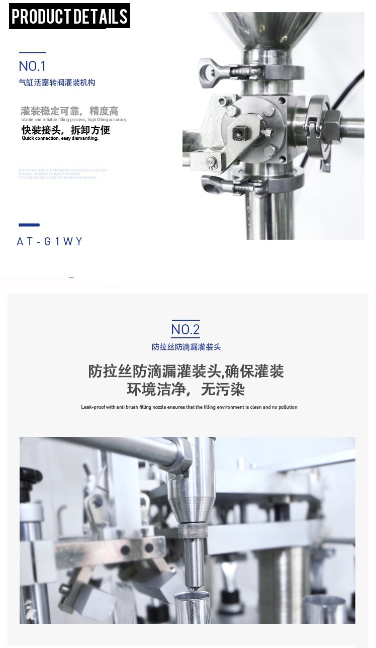 本系列產(chǎn)品是本公司專(zhuān)業(yè)為膏體,高粘度的灌裝設(shè)計(jì)的一款高新技術(shù)產(chǎn)品,旋轉(zhuǎn)式定位。適用于牙膏軟管,藥膏,化裝品軟管等膏體自動(dòng)灌裝,可根據(jù)物料粘度選擇加熱方式,本機(jī)裝有