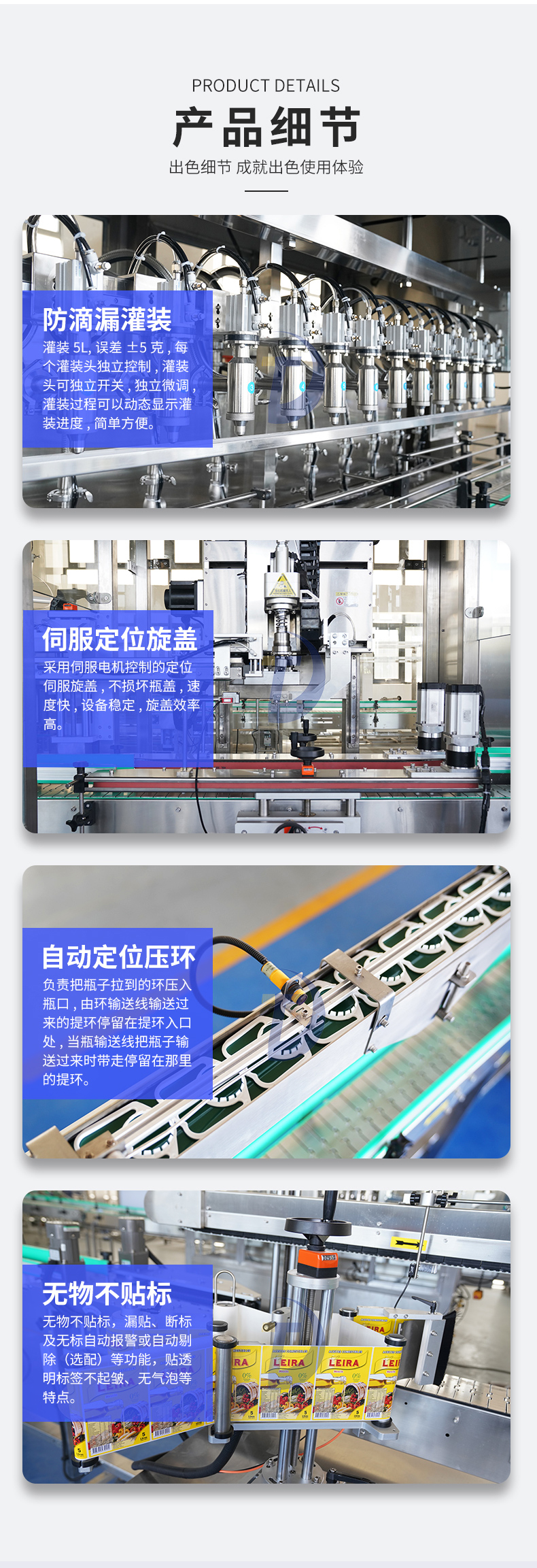 當(dāng)油桶移動(dòng)到灌裝頭下方時(shí),灌裝頭會(huì)自動(dòng)啟動(dòng),開(kāi)始進(jìn)行自動(dòng)灌裝。在這個(gè)過(guò)程中,灌裝頭會(huì)感應(yīng)油桶的存在,并根據(jù)設(shè)定好的參數(shù)自動(dòng)進(jìn)行灌裝。當(dāng)油桶已經(jīng)達(dá)到預(yù)定容量后,灌裝頭會(huì)自動(dòng)關(guān)閉,停止灌裝。